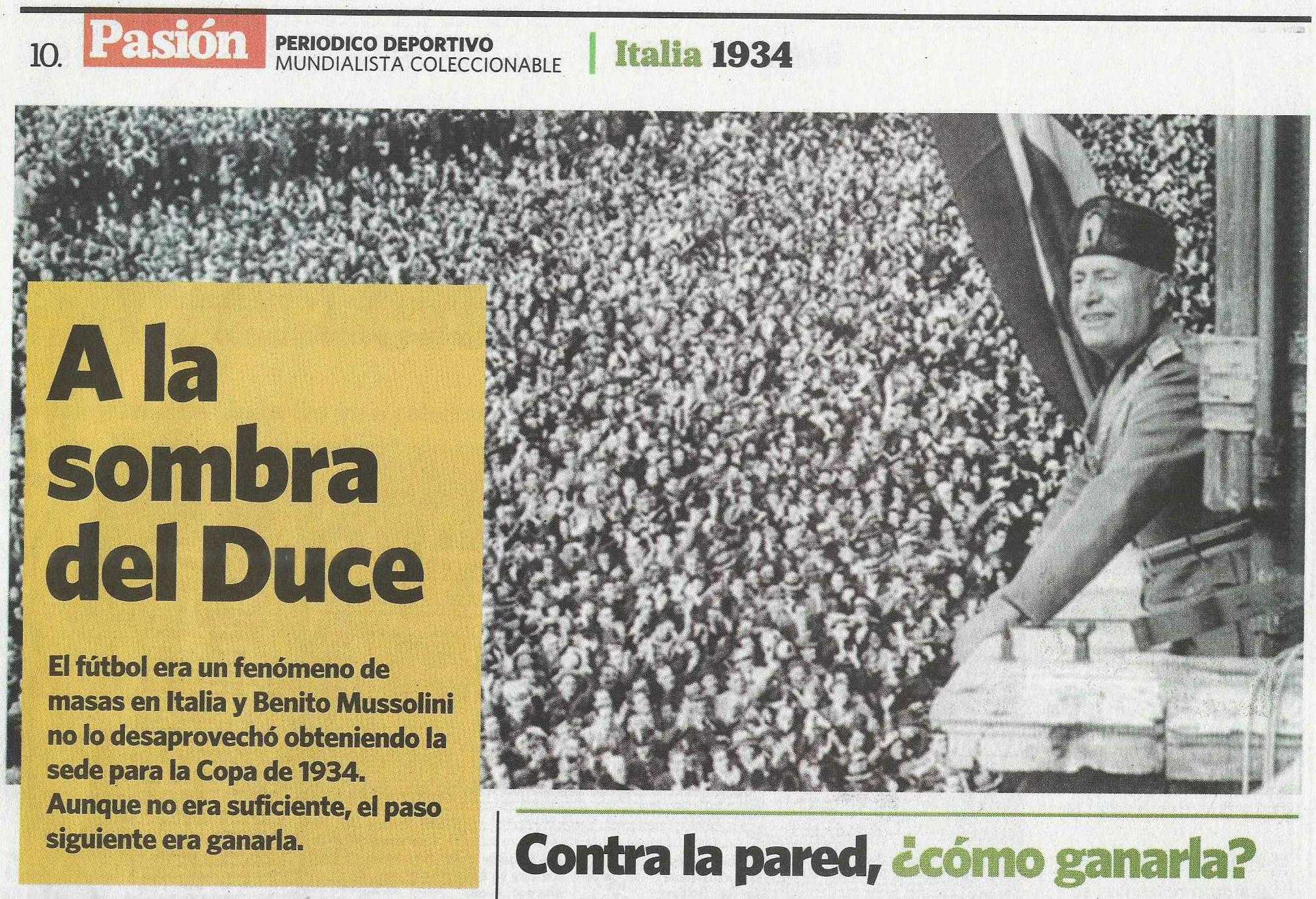 Detrás de toda la gestión para que se les otorgue está Benito Mussolini, ‘il Duce’, el dictador italiano en el poder desde 1922 y máximo dirigente del Partido Nacional Fascista. Conoce el poder de convocatoria popular que tiene un deporte al que ellos llaman ‘Calcio’, desea que se le asocie sus éxitos tanto con su figura como con su doctrina política.